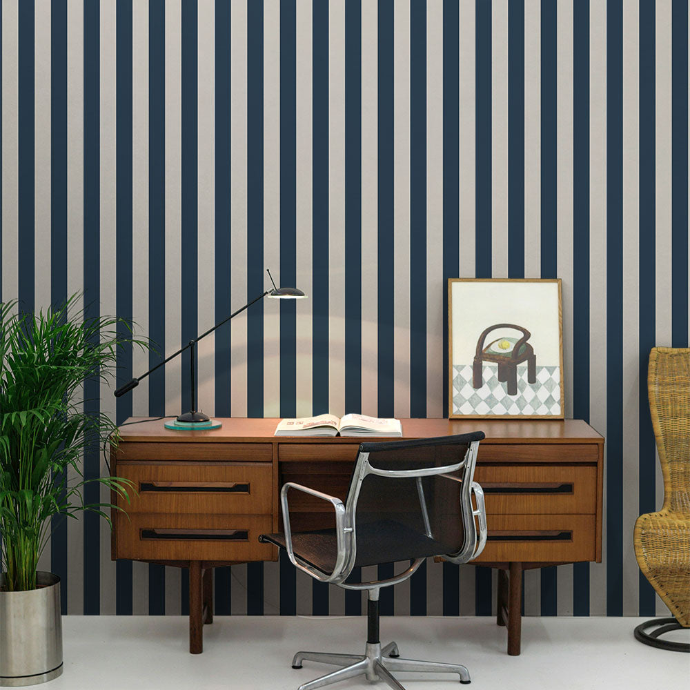 はがせる壁紙 のりなしタイプ ロンドンストライプW4 (49cm×2.5mサイズ) NKH-LS405 ネイビー