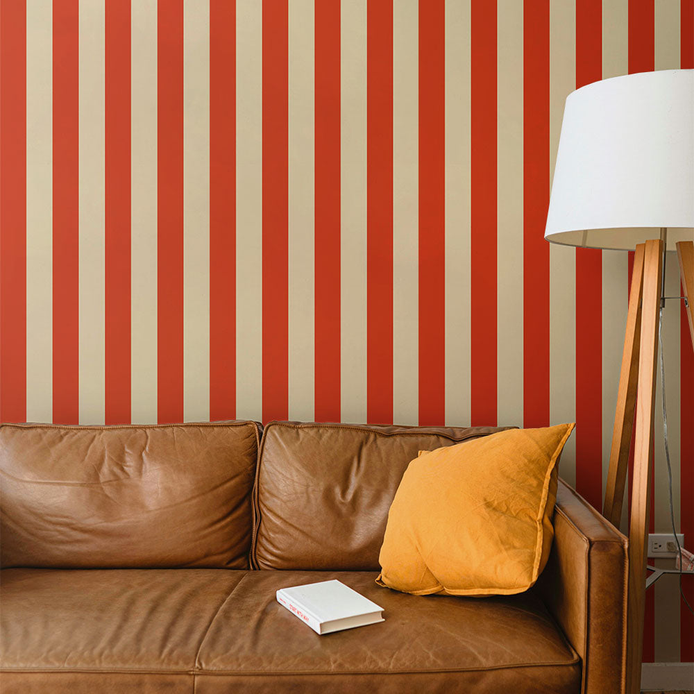 はがせる壁紙 のりなしタイプ ロンドンストライプW4 (49cm×2.5mサイズ) NKH-LS409 レッド×ベージュ