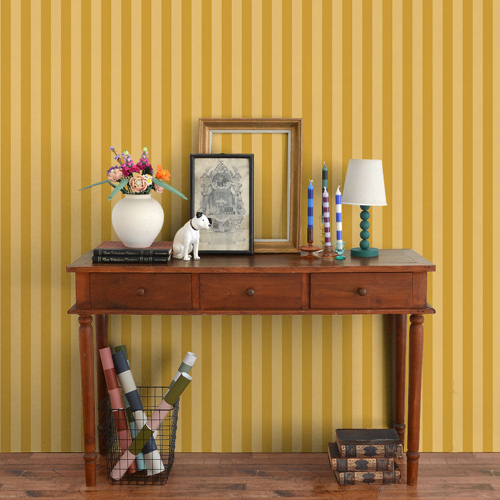 はがせる壁紙 のりなしタイプ ロンドンストライプW6 (49cm×3mサイズ) NKH-LS606 マスタード×イエロー