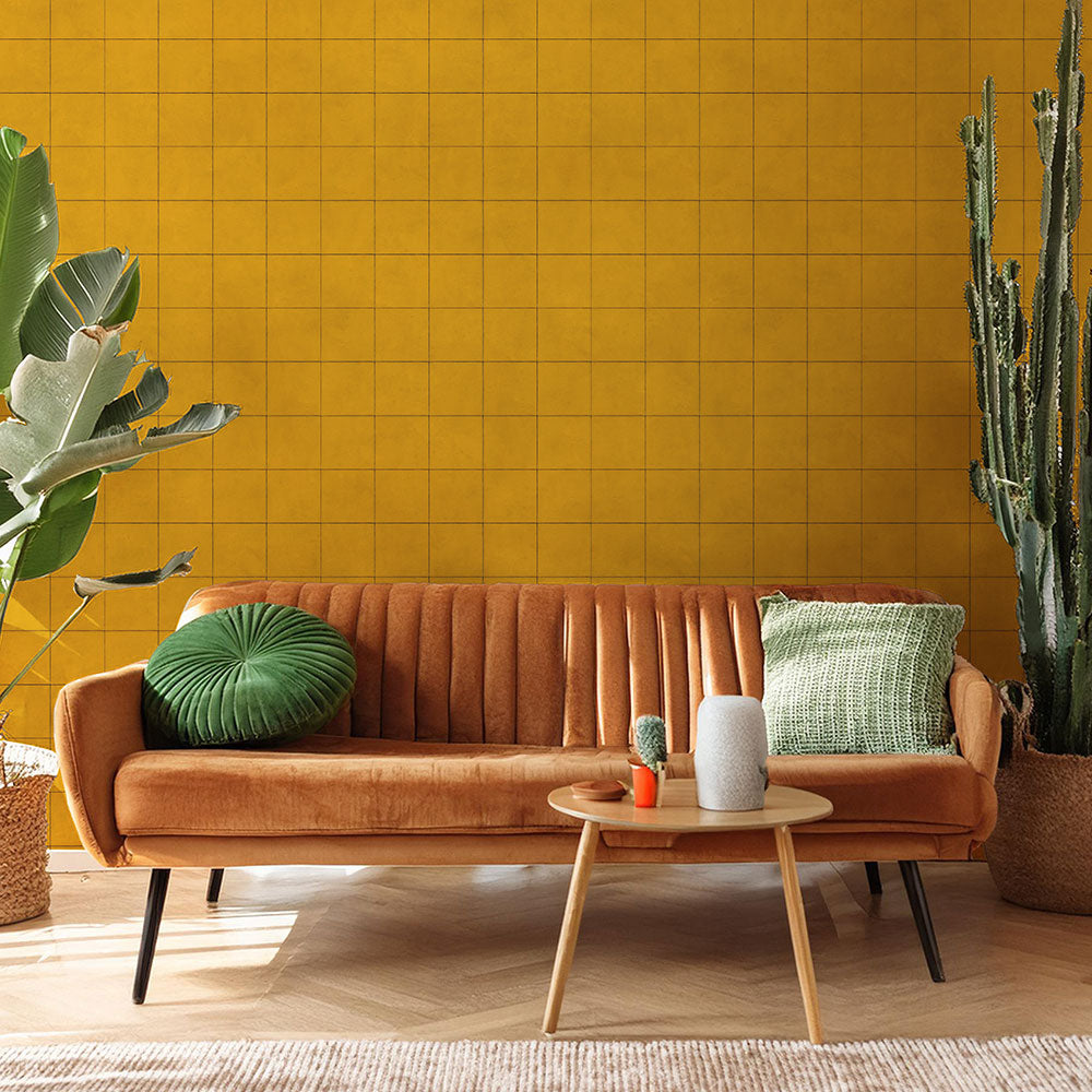 貼りやすいフリース壁紙(のりなし) メキシカントーンタイル (49cm×2.5mサイズ) NKH-MT01 サフラン