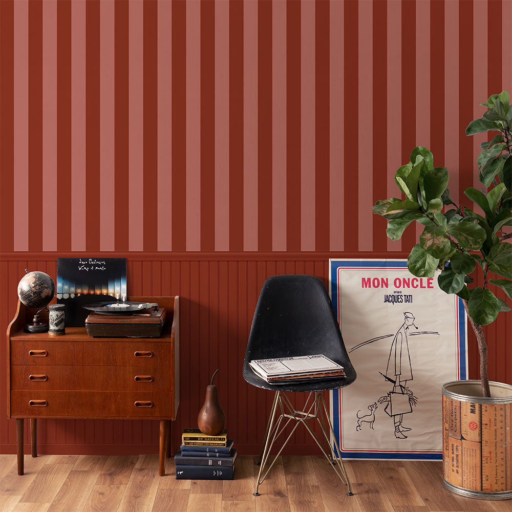 はがせる壁紙 のりなしタイプ ストライプ切り替えパネル (49cm×3mサイズ) NKH-SPK05 レッド×チェリー