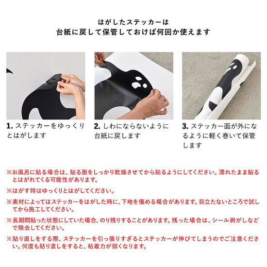 素材によっては、下地を傷めたり、のり残りする場合があります。 目立たないところで試してから施工してください。