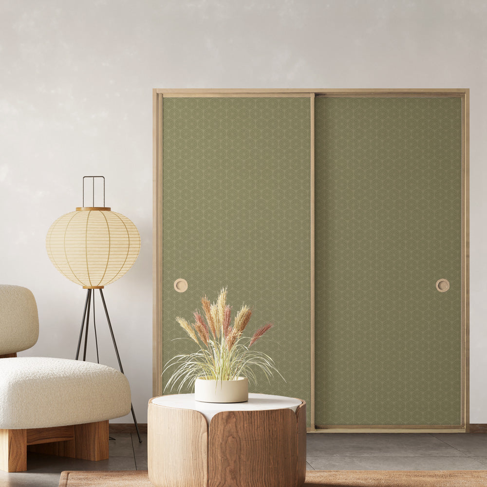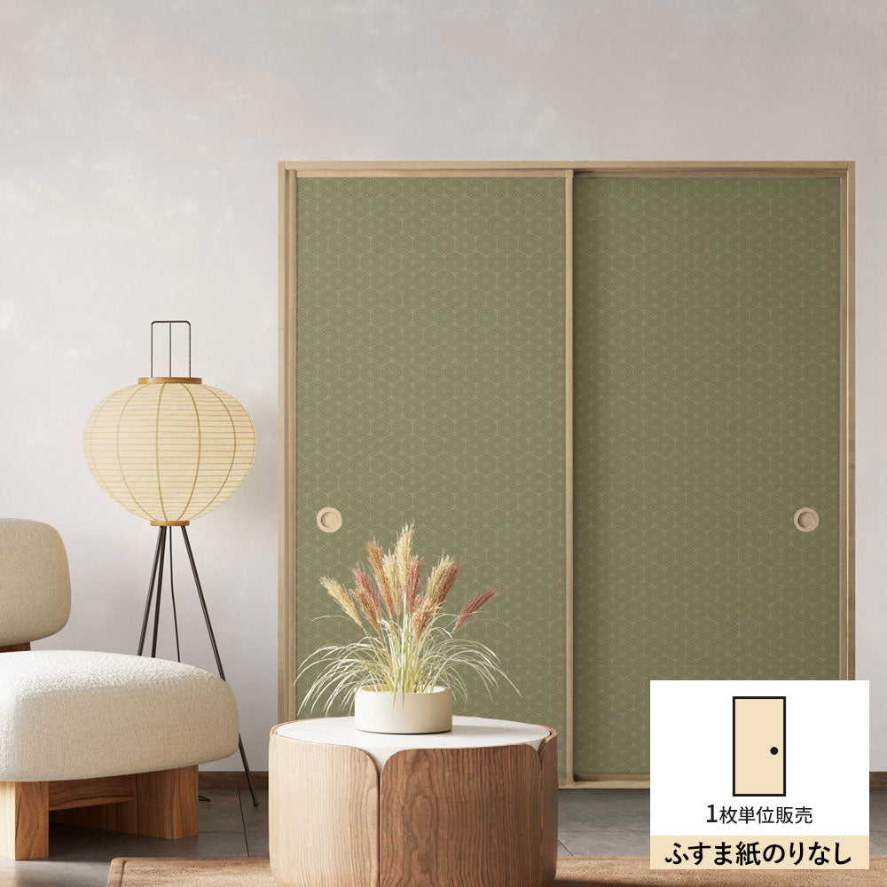 ふすまリメイクシート ふすま紙のりなしタイプ 和柄 麻の葉 鶯 (約185cm×94cm)