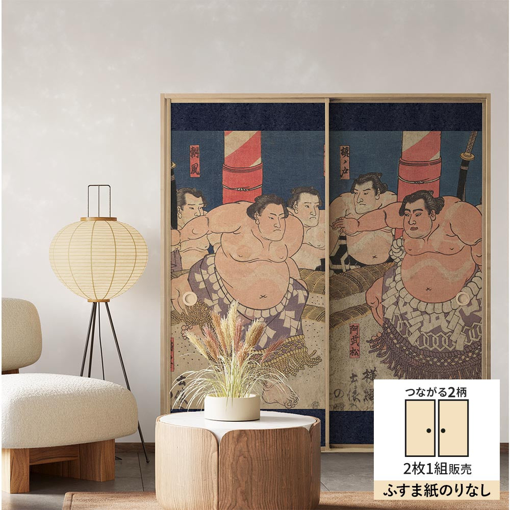 【2枚1組】ふすまリメイクシート ふすま紙のりなしタイプ つながる2柄 歌川国貞 稲妻 雷五郎 / 阿武松 緑之助