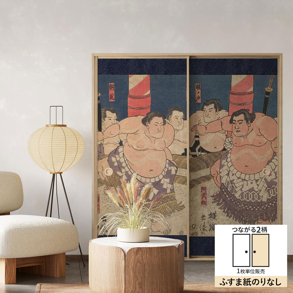 ふすまリメイクシート ふすま紙のりなしタイプ つながる2柄 歌川国貞 阿武松 緑之助 (約185cm×94cm)