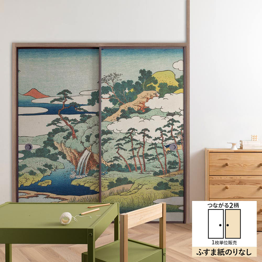 ふすまリメイクシート ふすま紙のりなしタイプ つながる2柄 葛飾北斎 城嶽霊泉 B (約185cm×94cm)