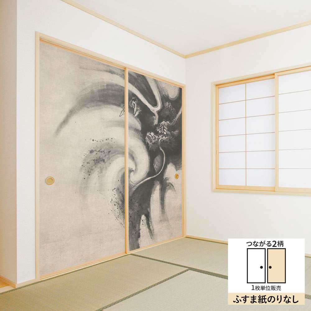 ふすまリメイクシート ふすま紙のりなしタイプ つながる2柄 狩野山雪 龍図 B (約185cm×94cm)