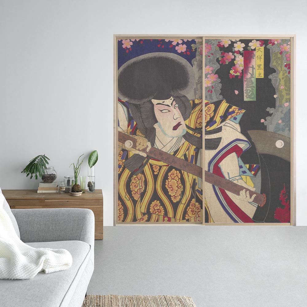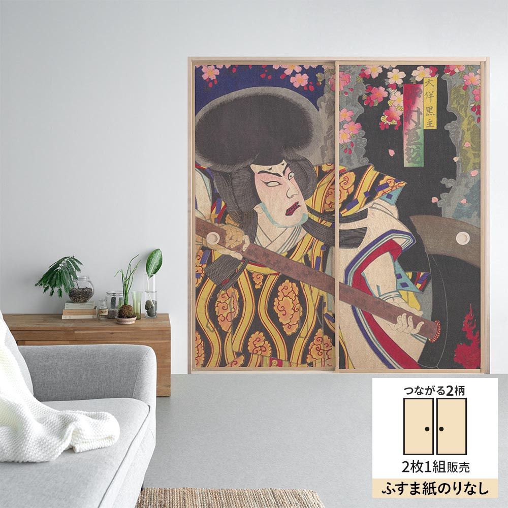 【2枚1組】ふすまリメイクシート ふすま紙のりなしタイプ つながる2柄 楊洲周延 積恋雪関扉