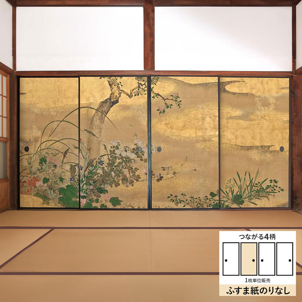 ふすまリメイクシート ふすま紙のりなしタイプ つながる4柄 渡辺始興 四季花木図屏風 B (約185cm×94cm)