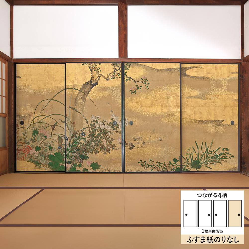 ふすまリメイクシート ふすま紙のりなしタイプ つながる4柄 渡辺始興 四季花木図屏風 D (約185cm×94cm)