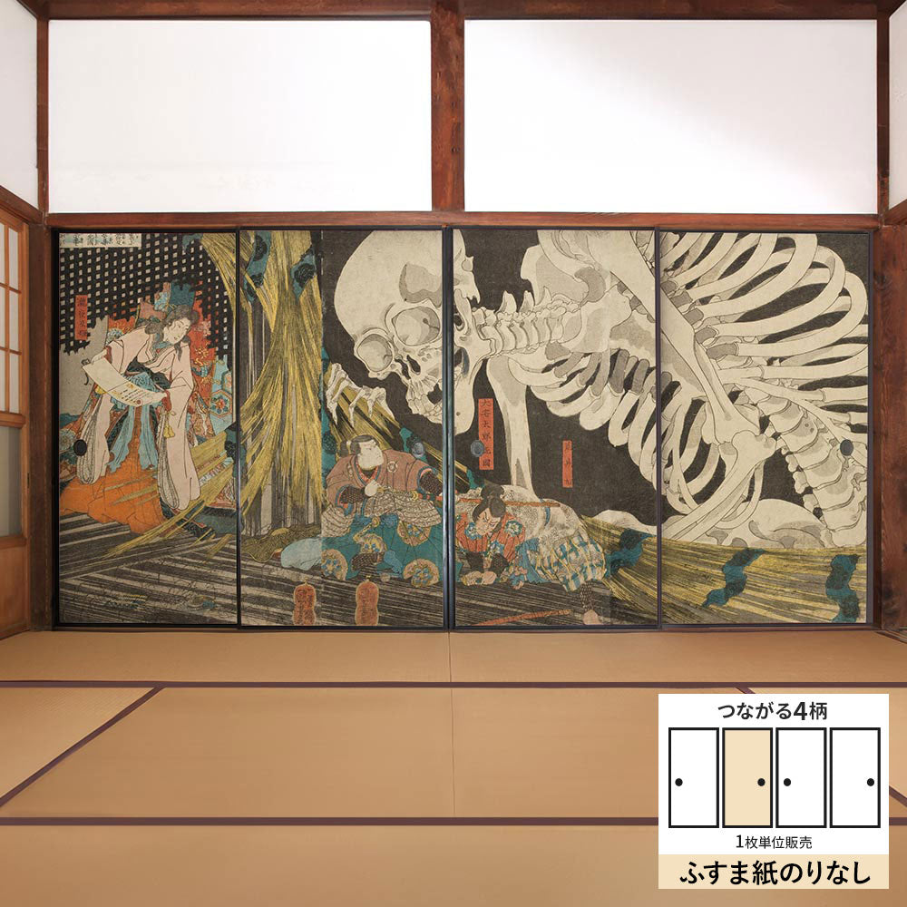 ふすまリメイクシート ふすま紙のりなしタイプ つながる4柄 歌川国芳 相馬の古内裏 B (約185cm×94cm)
