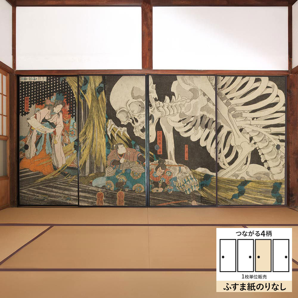 ふすまリメイクシート ふすま紙のりなしタイプ つながる4柄 歌川国芳 相馬の古内裏 C (約185cm×94cm)