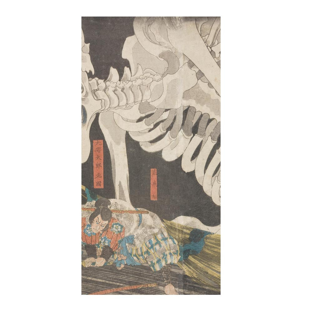 妖怪退治の場面を迫力のある画面構成で描いている。