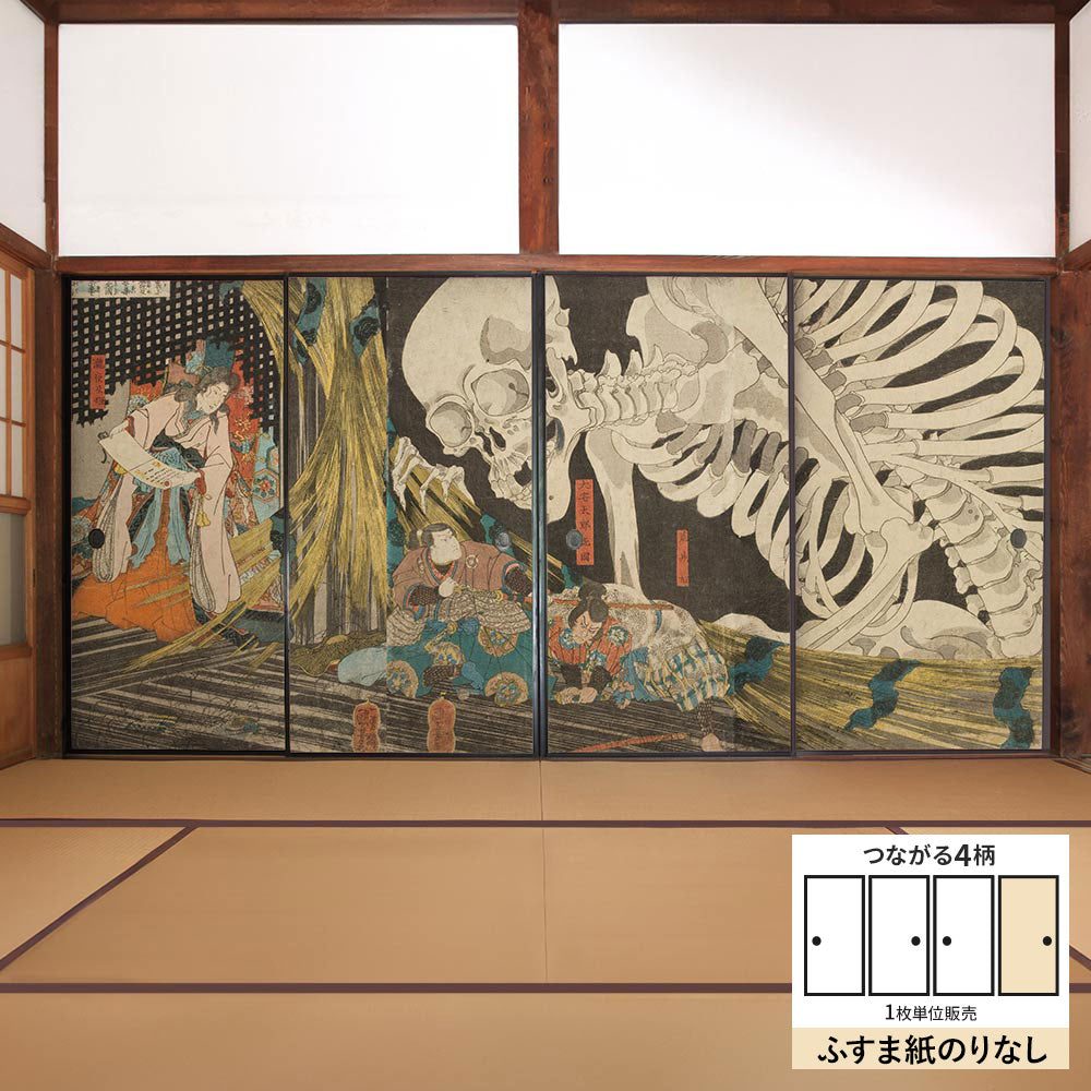 ふすまリメイクシート ふすま紙のりなしタイプ つながる4柄 歌川国芳 相馬の古内裏 D (約185cm×94cm)