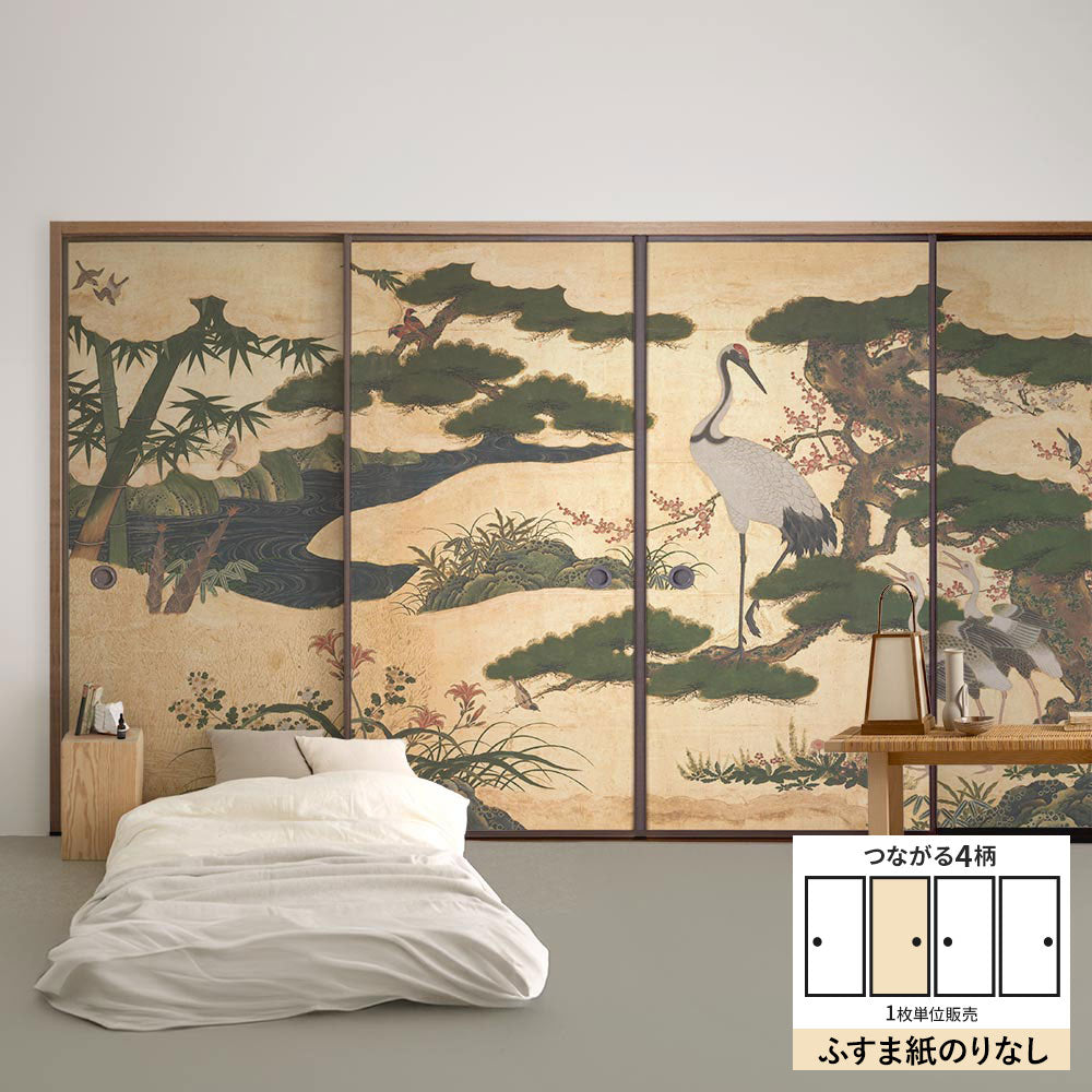 ふすまリメイクシート ふすま紙のりなしタイプ つながる4柄 四季花鳥図屏風 B (約185cm×94cm)