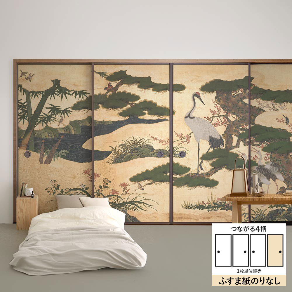 ふすまリメイクシート ふすま紙のりなしタイプ つながる4柄 四季花鳥図屏風 D (約185cm×94cm)