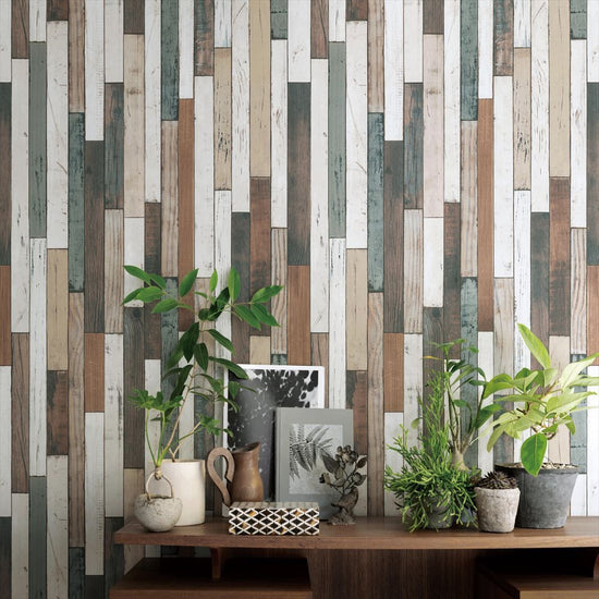 スクラップウッド調の壁紙。ヴィンテージ感のあるデザインです。