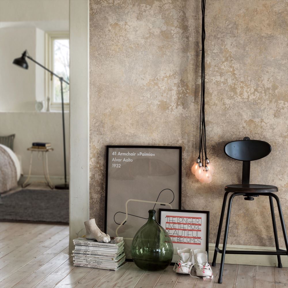 粗いテクスチャーの壁紙はヴィンテージスタイルを演出します。