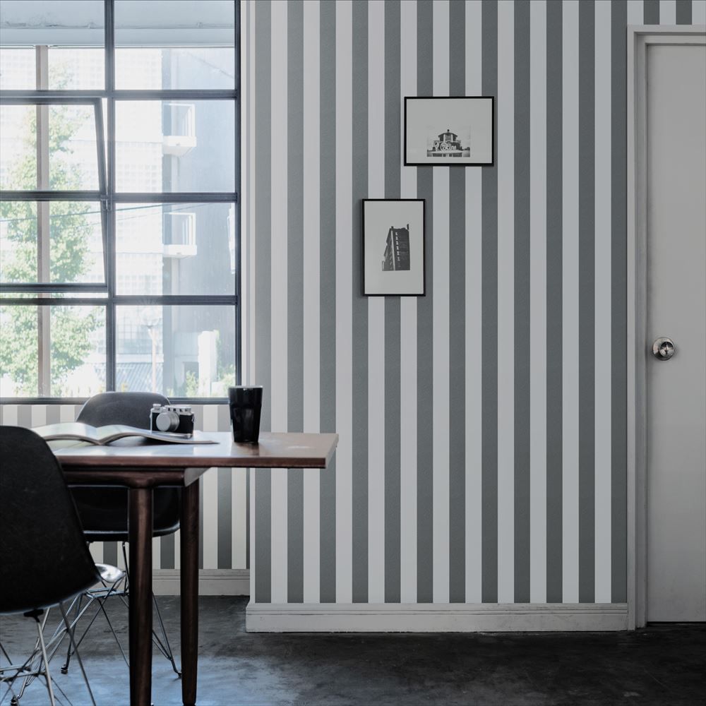 ストライプの壁紙。カジュアルなインテリアや海外インテリアのようなクラシカルな空間にもおすすめです。