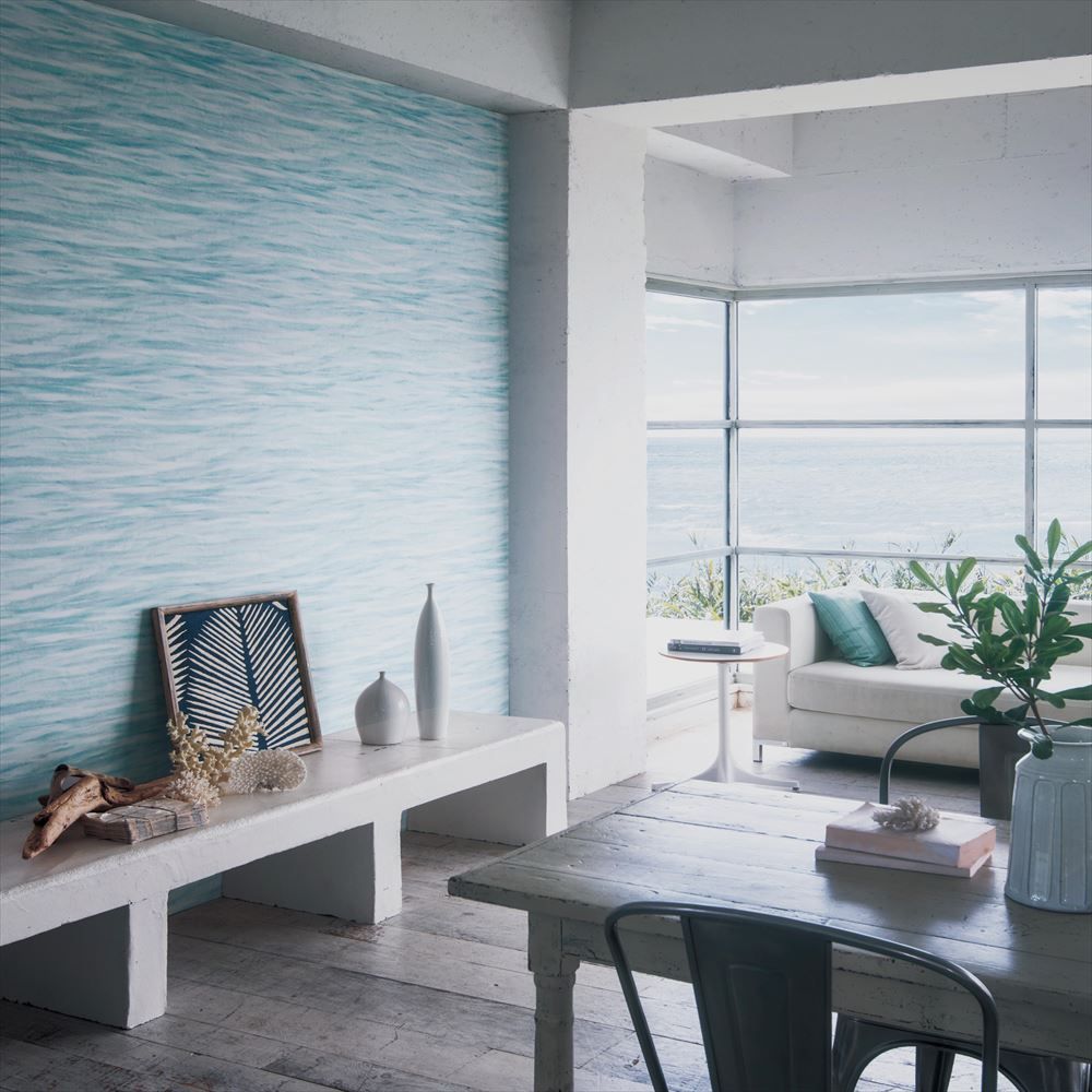 海がモチーフの壁紙です。潮風を感じてくつろぐ海辺でのひとときを楽しむライフスタイルをイメージしています。
