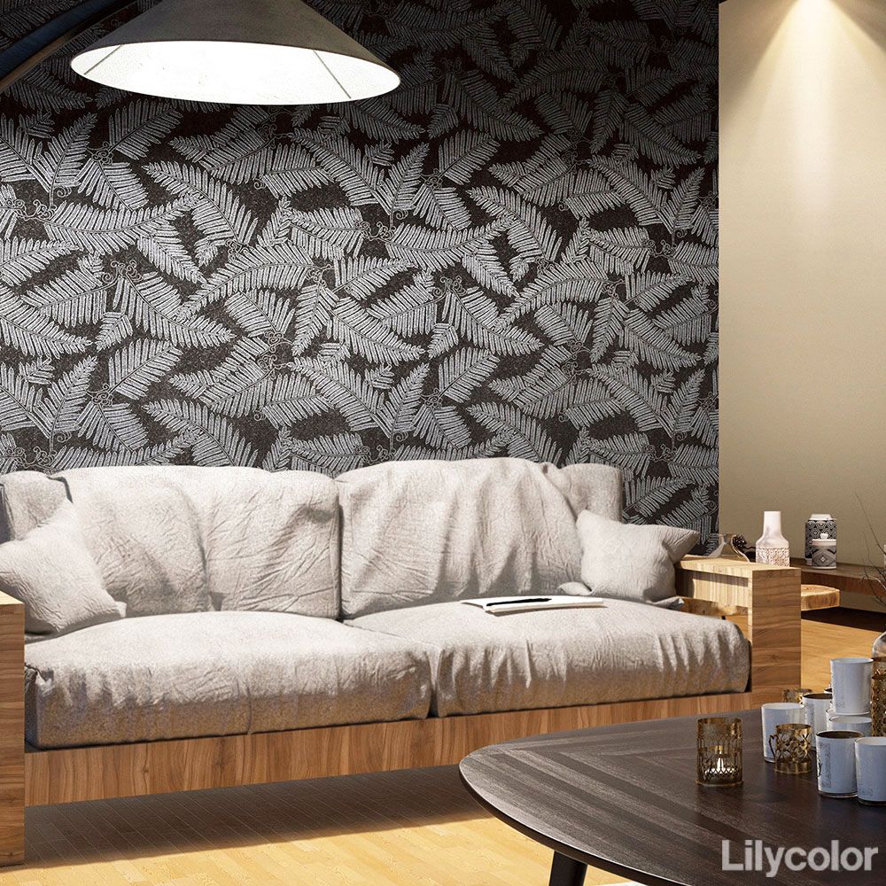 型紙らしい彫りの意匠が魅力的な大きな羊歯の葉の柄を黒地にシルバーパールでダイナミックに表現しました。