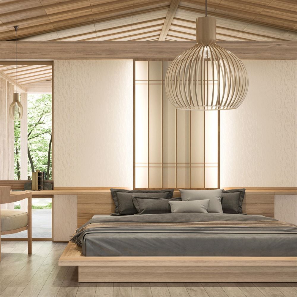 楮繊維を漉き込んだような和紙調の壁紙。シックなデザインで、伝統的な和の空間だけでなく、和モダン、ジャパンディにもおすすめです。