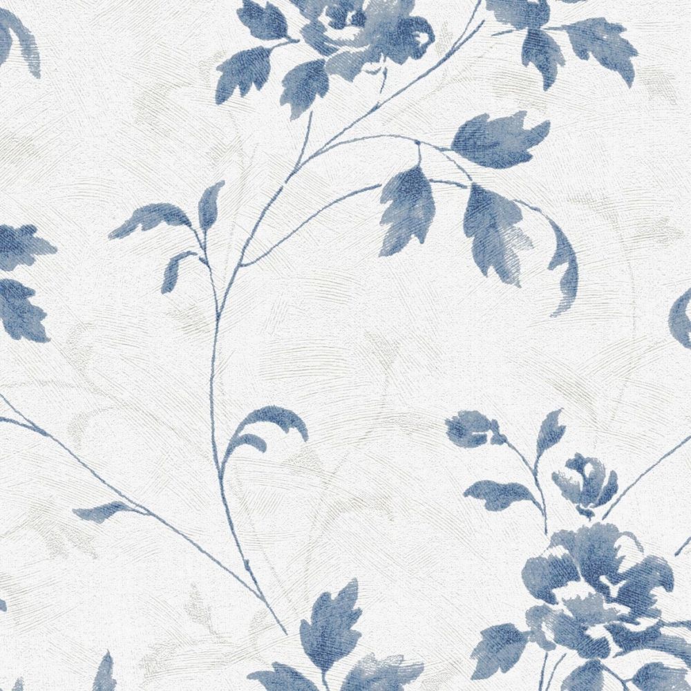 白い陶器に絵付されたような藍色の花柄。ささやかに光るシルバーパールのシルエットもポイントです。
