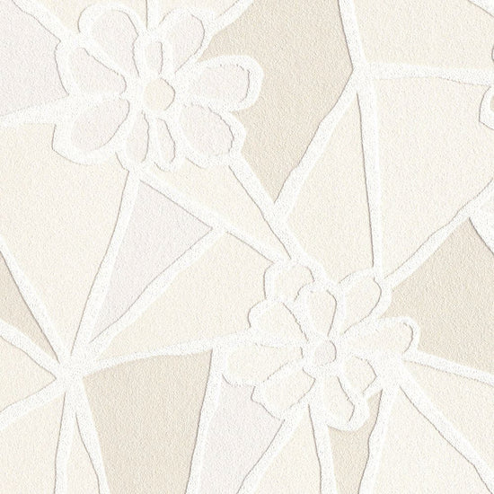 ランダムなサイズの三角形のタイルの中に花を埋め込んだデザイン。