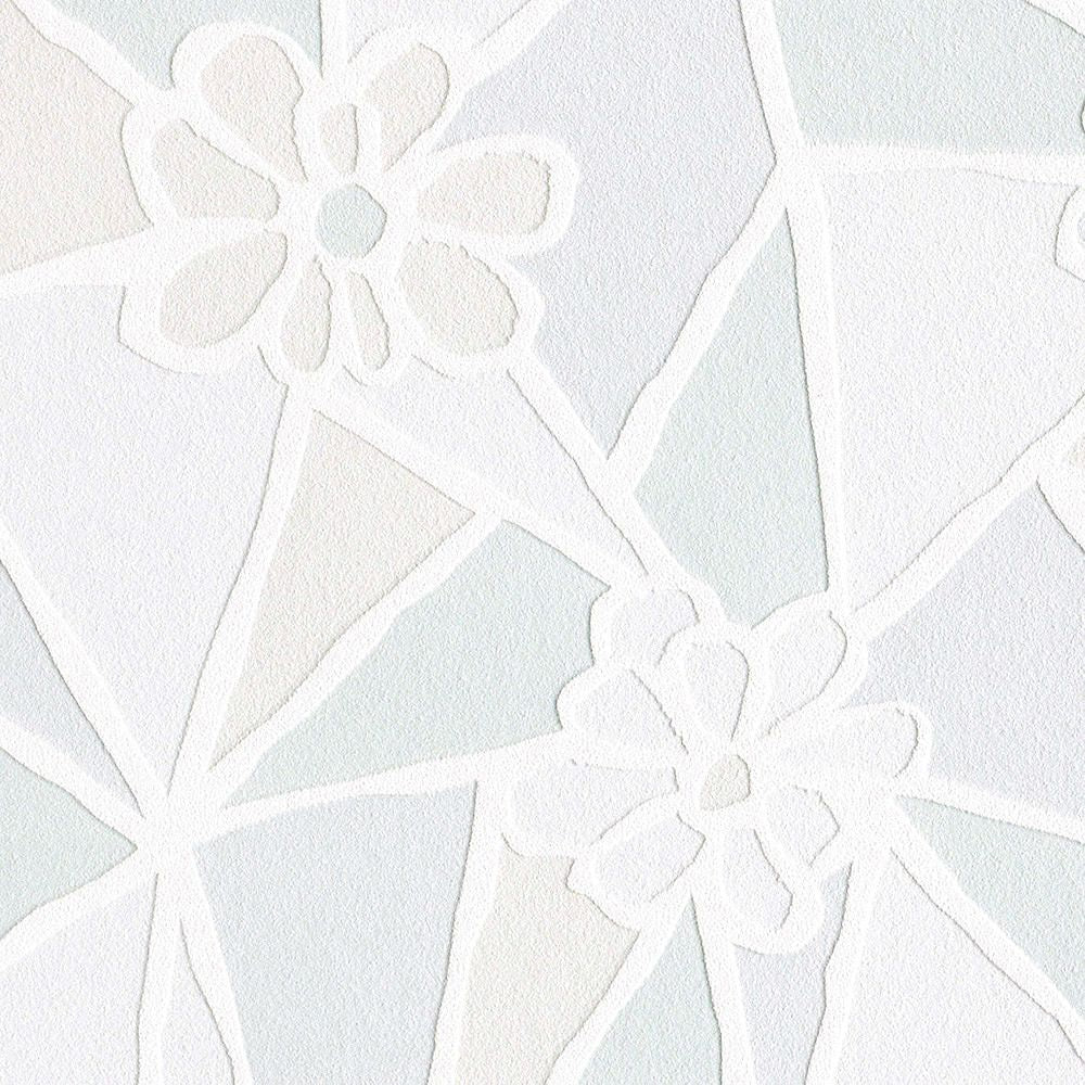 ランダムなサイズの三角形のタイルの中に花を埋め込んだデザイン。