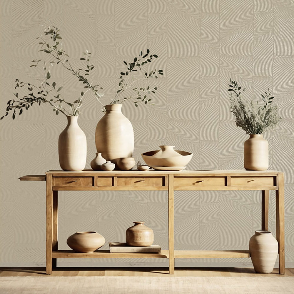 テクスチャーが本物志向の壁紙。クレイをのせたサーフェースで光の反射が柔らかく美しいです。寝室やリビングなどリラックスできる温かみのある空間づくりにおすすめです。