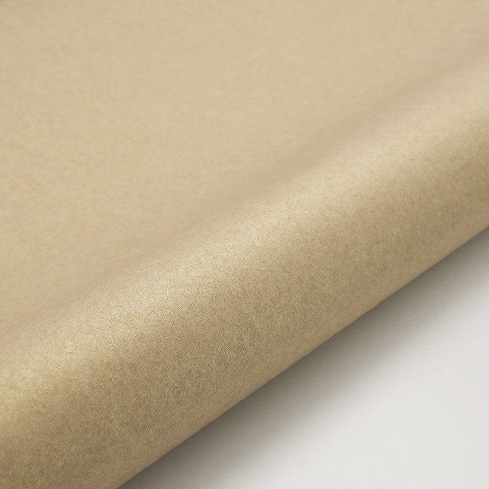 彼の手がけるファブリック、カーペット、壁紙は光の陰影や肌触りなどに拘りをもってデザインされています。上品なシャンパンの輝きを持つ高級感のある無地の壁紙。