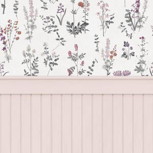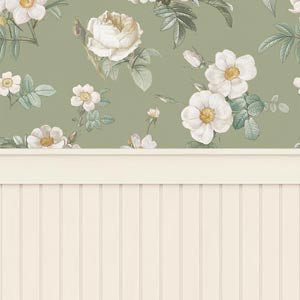 カントリーな壁紙に腰壁のデザインを合わせて。
