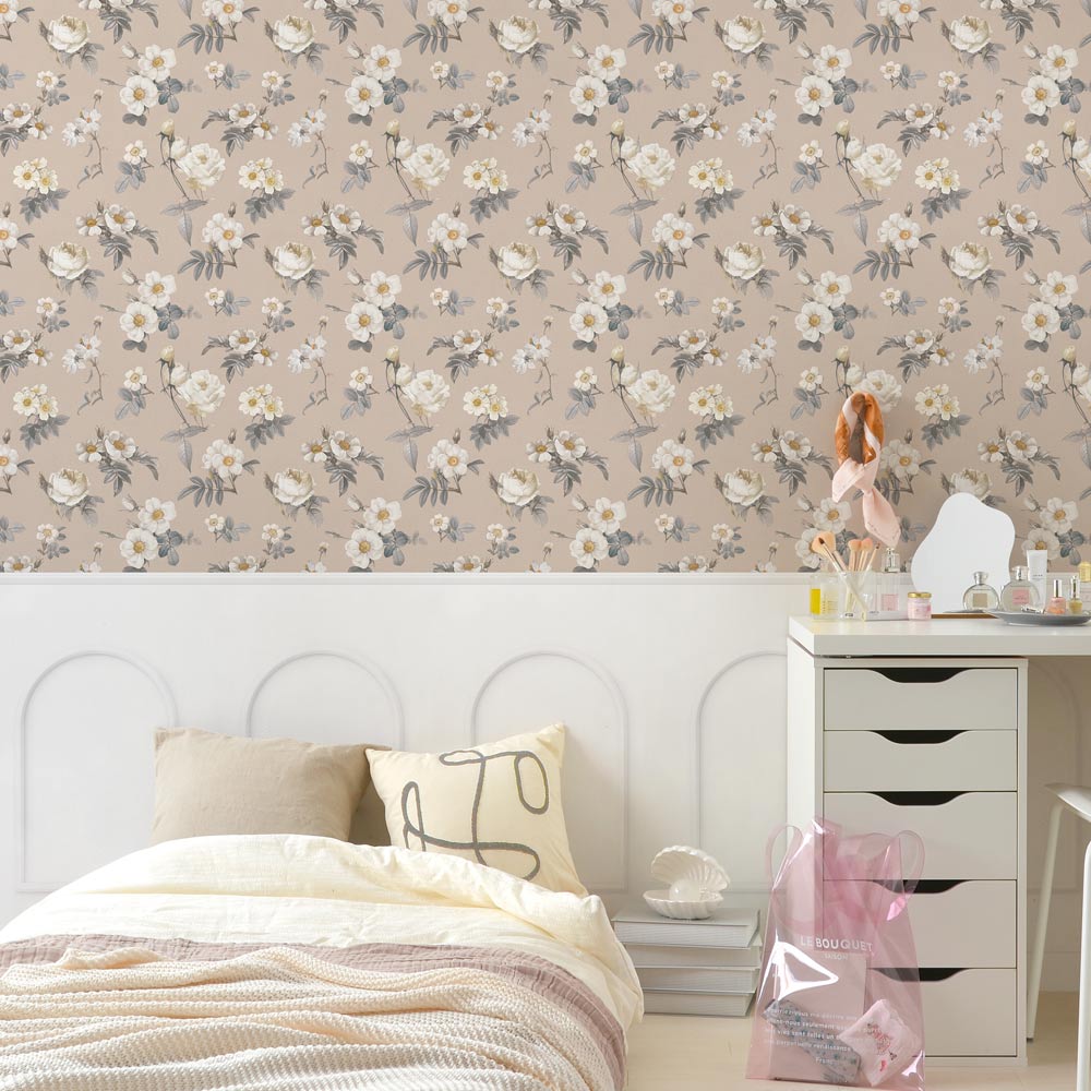 はがせる壁紙 のりなしタイプ Mon Sucrier パネリングカントリー (49cm×2.5mサイズ) NMS-CTP02 ミルクティー×ホワイトアーチ