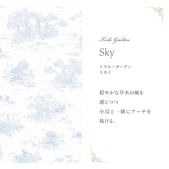 はがせる壁紙 のりなしタイプ Mon Sucrier トワル柄 トワル・ガーデン (49cm×3mサイズ) NMS-TG01 スカイ