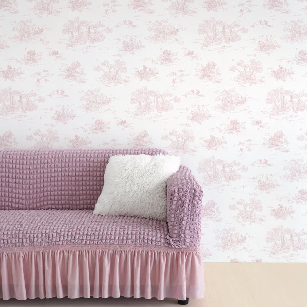 はがせる壁紙 のりなしタイプ Mon Sucrier トワル柄 トワル・ガーデン (49cm×3mサイズ) NMS-TG02 ロゼ