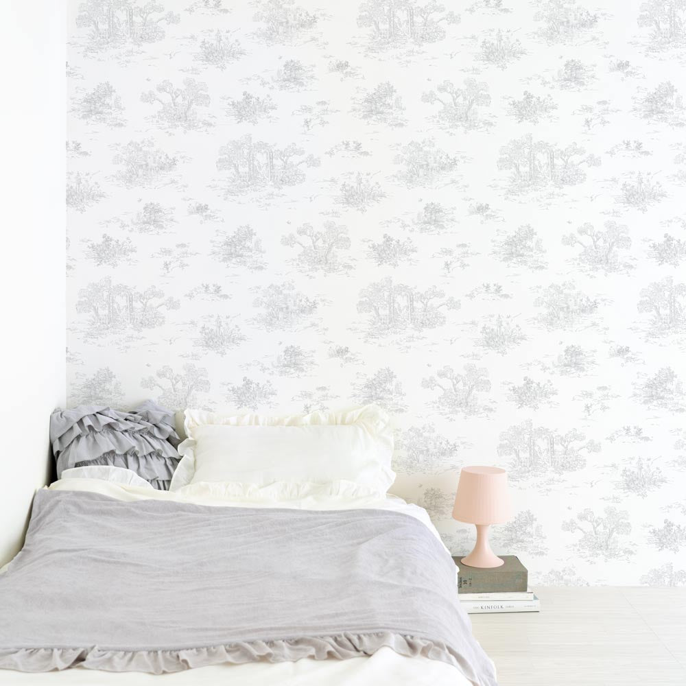 はがせる壁紙 のりなしタイプ Mon Sucrier トワル柄 トワル・ガーデン (49cm×3mサイズ) NMS-TG03 ミスト