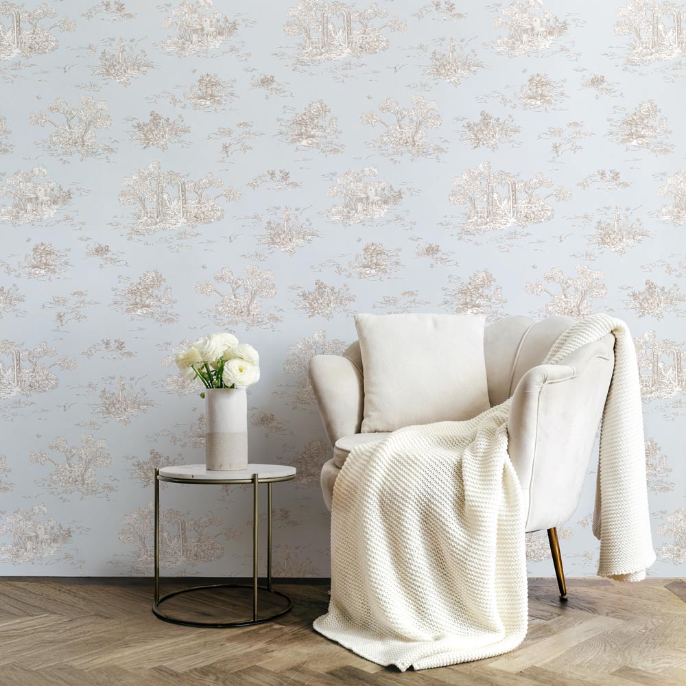 はがせる壁紙 のりなしタイプ Mon Sucrier トワル柄 トワル・ガーデン (49cm×3mサイズ) NMS-TG04 クラウド
