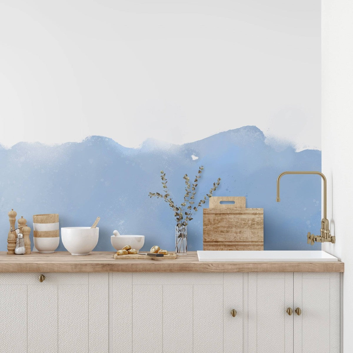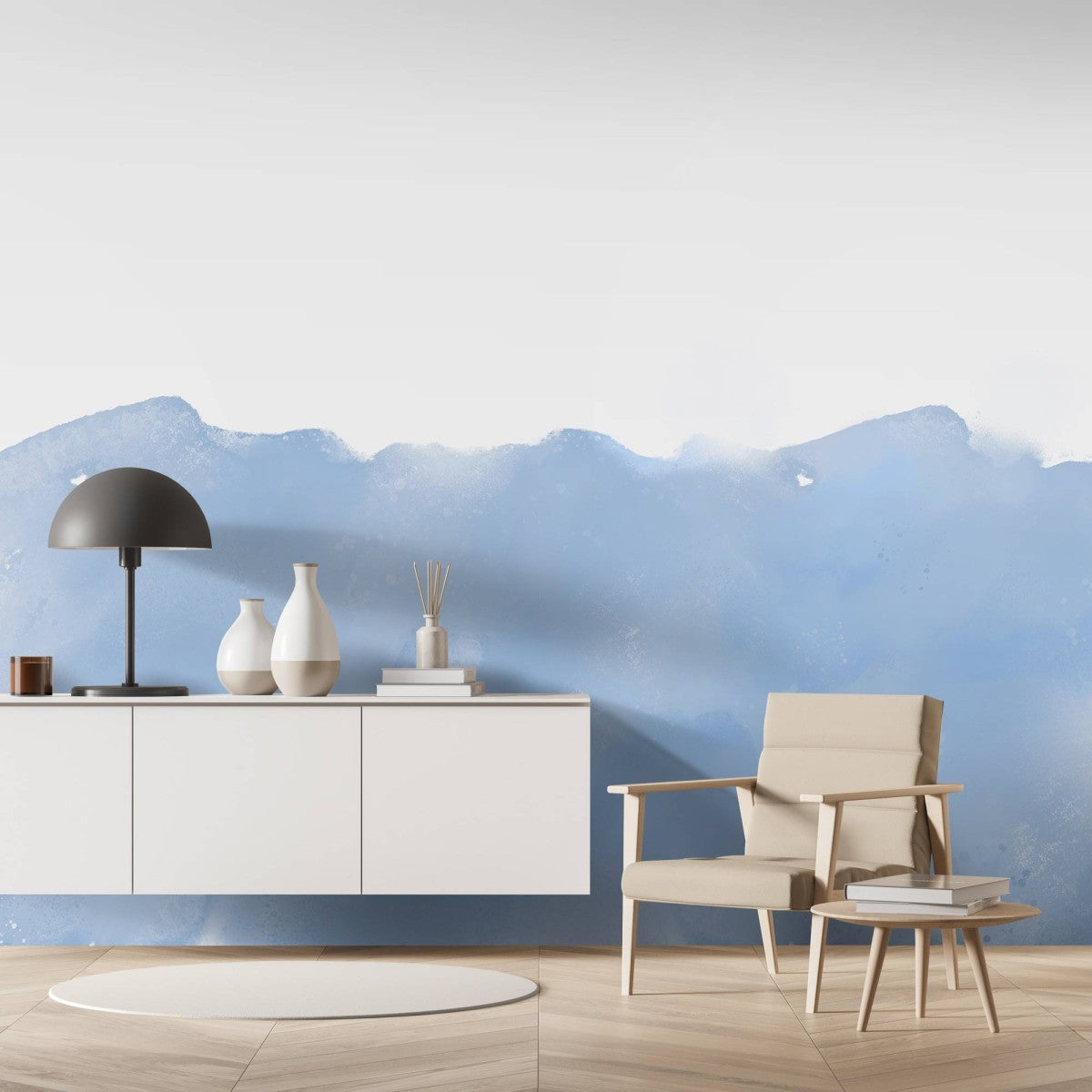 はがせるミューラル壁紙 のりなし Half Painted Carolina Blue NSO-G00104