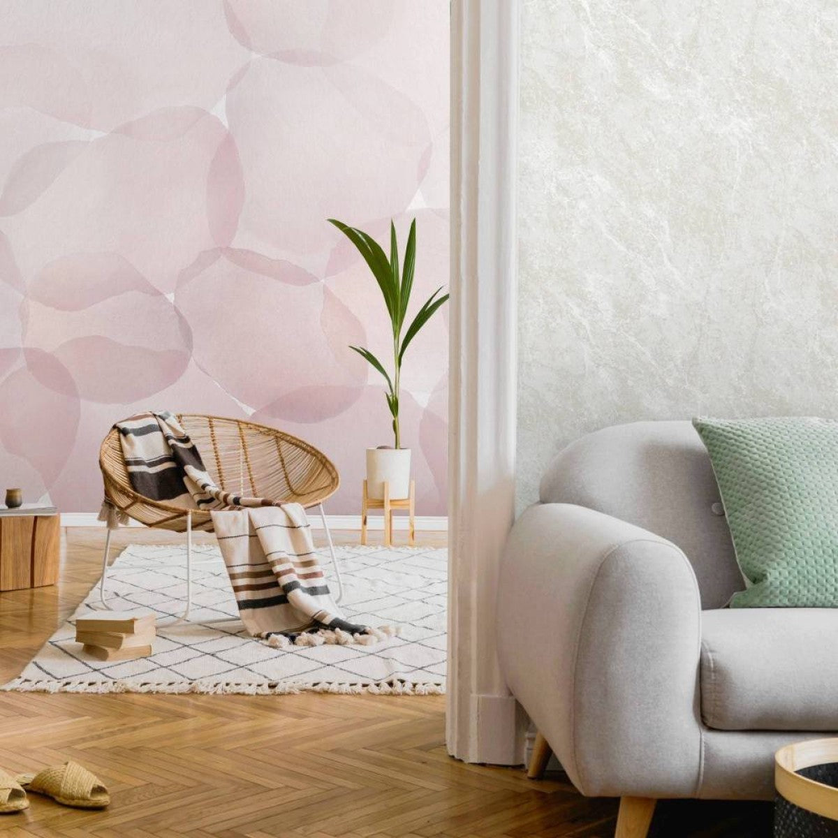 はがせるミューラル壁紙 のりなし Abstract Circles Pink NSO-G00136