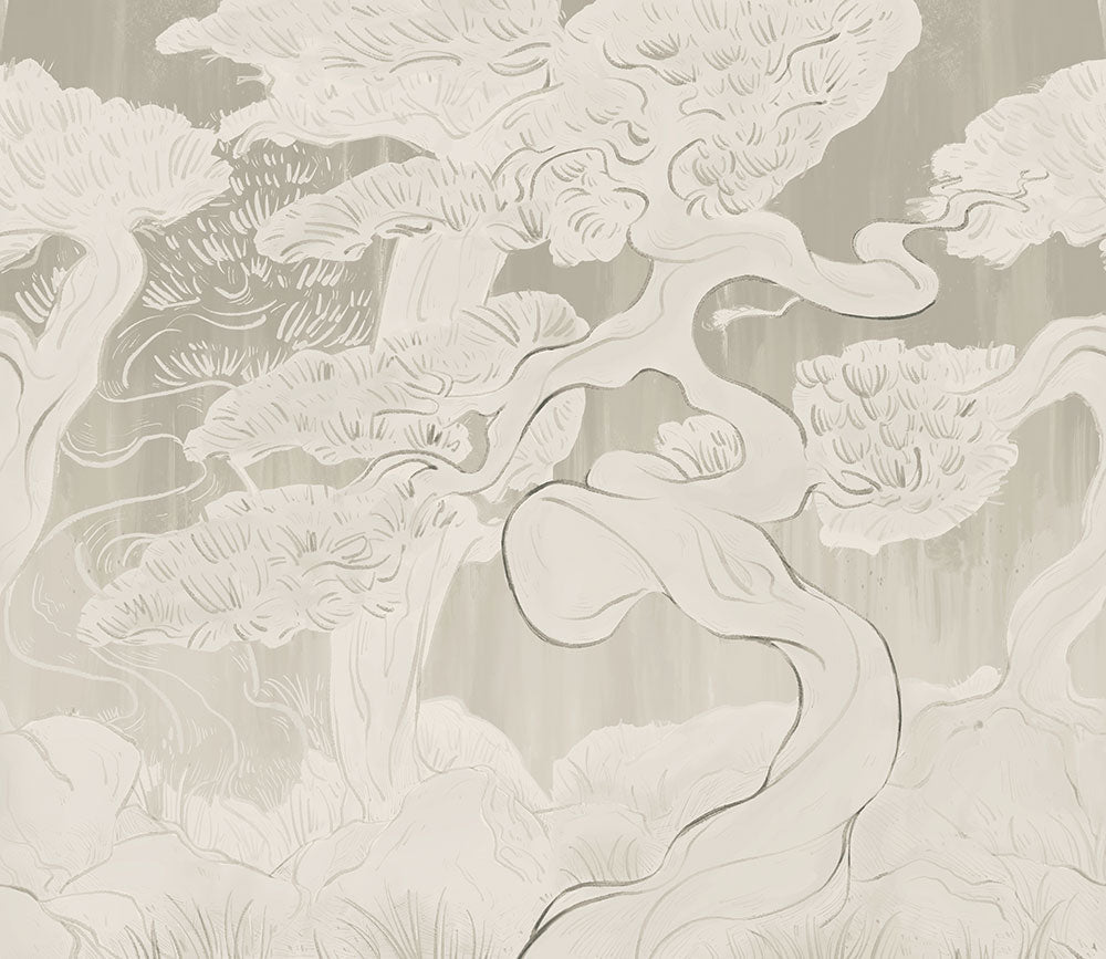 はがせるミューラル壁紙 のりなし Bonsai Garden Gold NSO-G00153