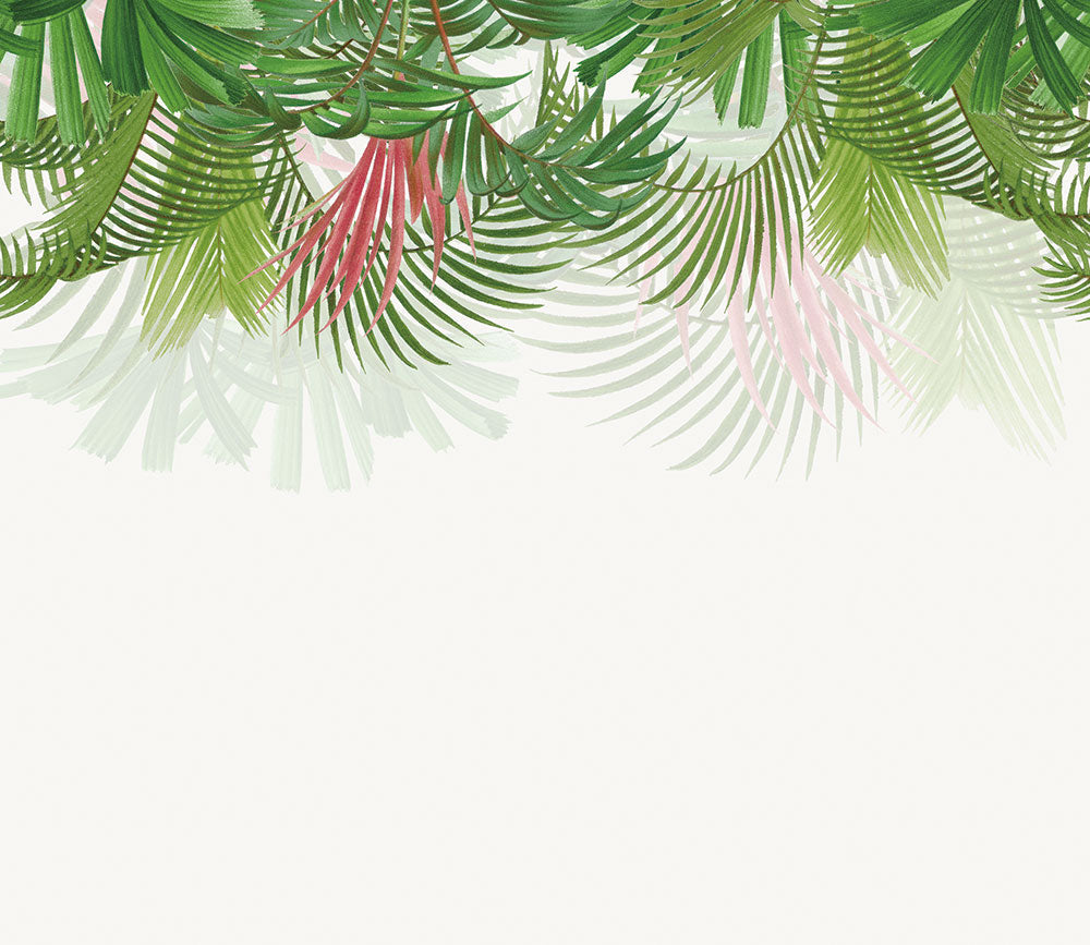明るい印象の上からトロピカルな植物が垂れ下がったデザイン