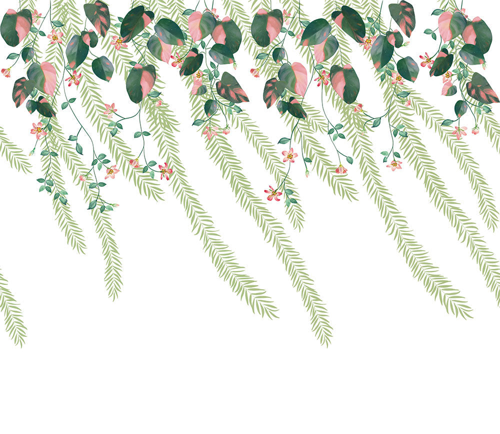 明るい印象の上からトロピカルな植物が垂れ下がったデザイン