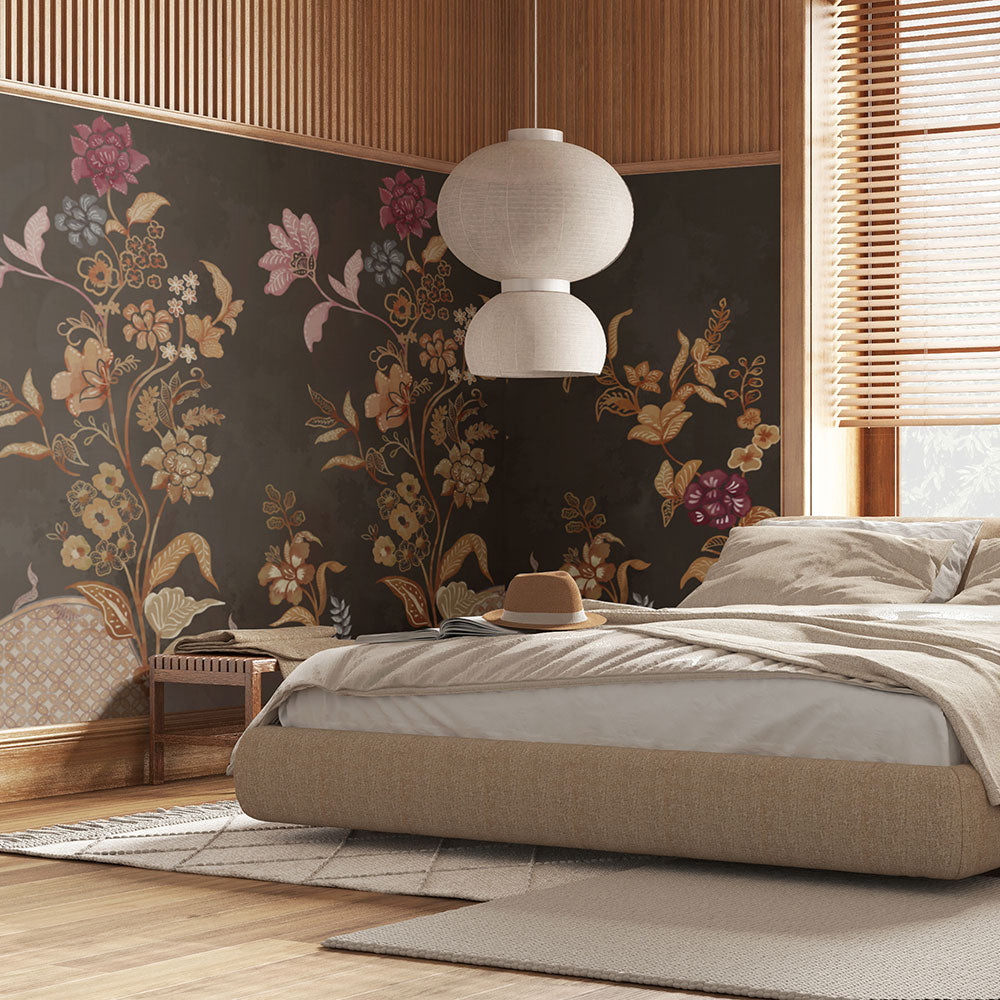 はがせるミューラル壁紙 のりなし Batik Boeket Brown NSO-G00231