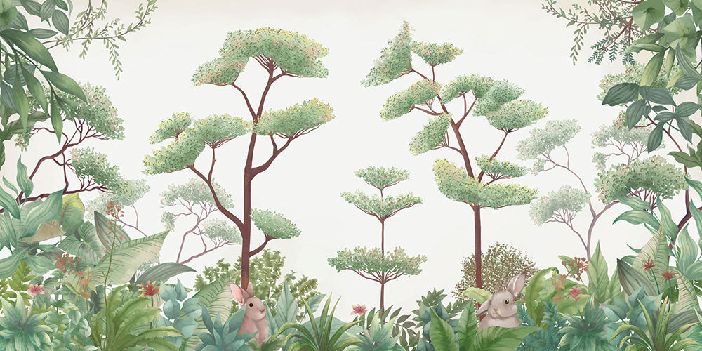 はがせるミューラル壁紙 のりなし Whimsical Garden Green NSO-G00234