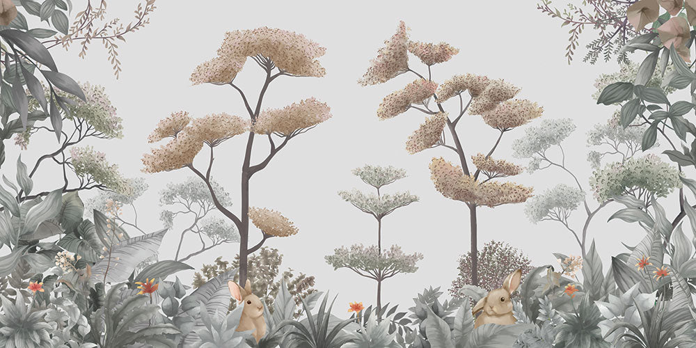 はがせるミューラル壁紙 のりなし Whimsical Garden Gray NSO-G00236