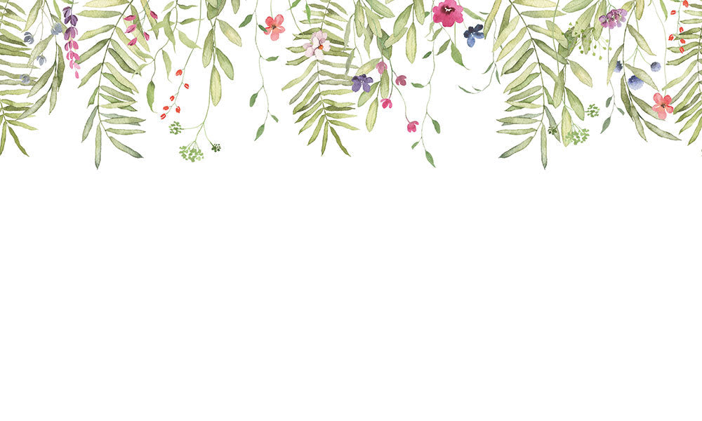 明るい印象の上からトロピカルな植物が垂れ下がったデザイン