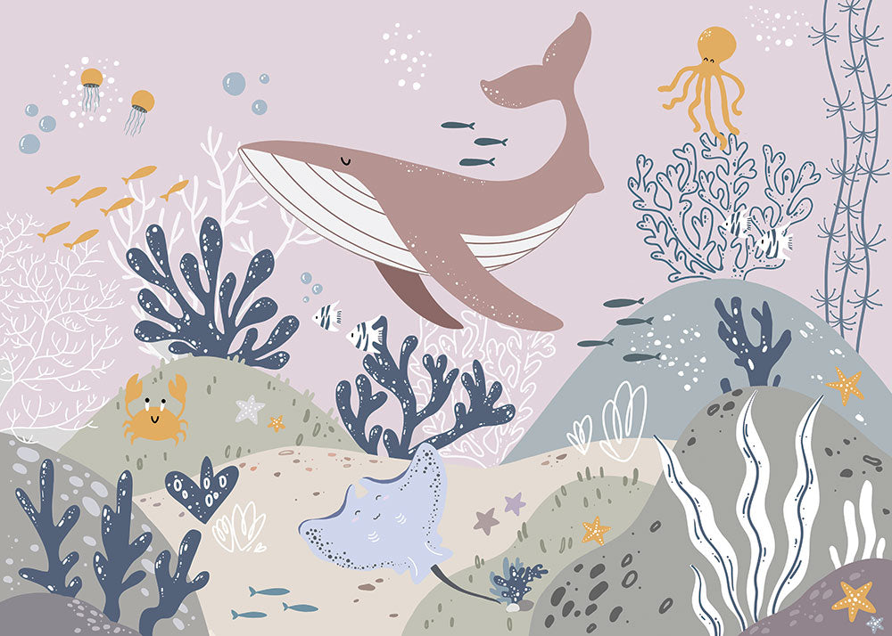はがせるミューラル壁紙 のりなし Under the Sea Wallpaper Pink NSO-G00247