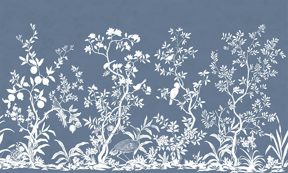 はがせるミューラル壁紙 のりなし Chinoisere Silhouette Blue NSO-G00259