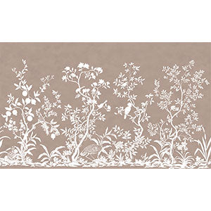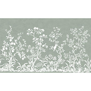 シノワズリな植物と鳥のデザインをインテリアに合わせやすいくすみカラー1色で表現