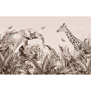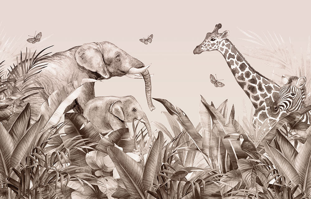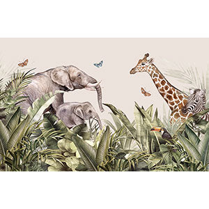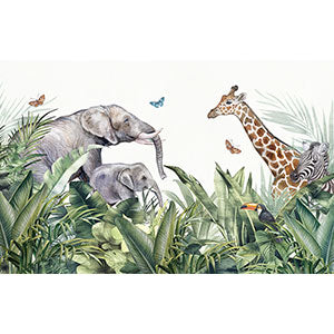 ジャングルの中のゾウやキリンたち